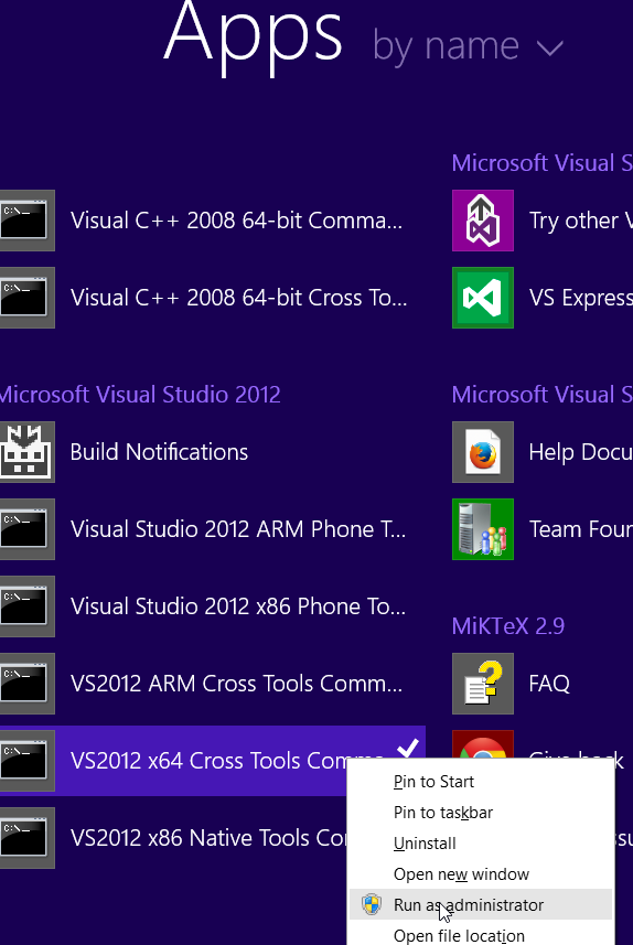 Open visual studio command prompt as an administrator. This is located under your Visual Studio family of applications.