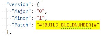 Add a Replace Tokens Task that will automatically replace the build number from VSTS pre-defined environment variables. I like to explicitly define the files where the tokens exist. In our case: task.json