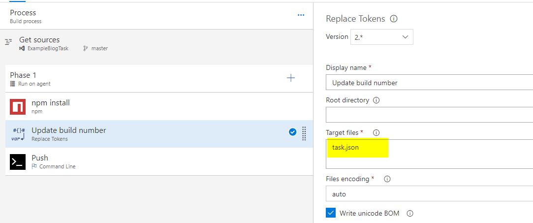 2. Replace tokens from task.json with the build number